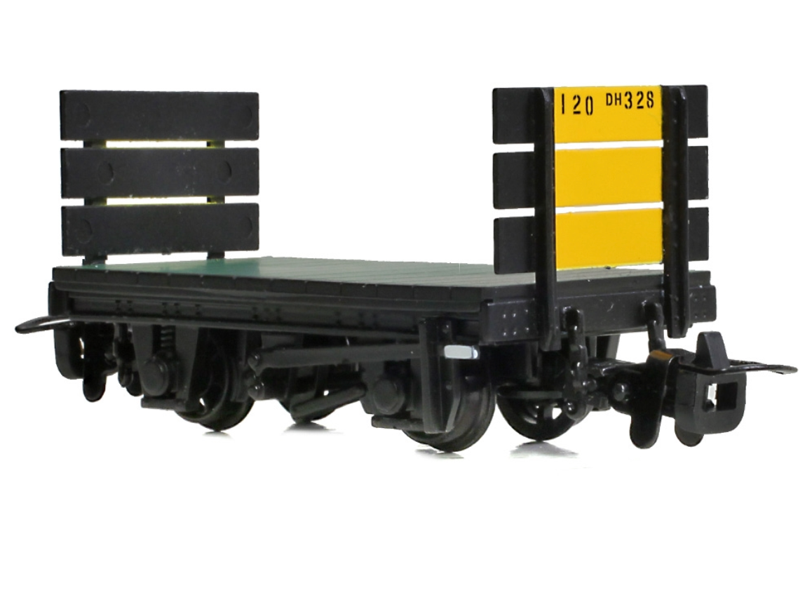 Royal Navy Armaments Depots (RNAD) were strategic sites located around the UK for the storage and supply of armaments to the Royal Navy and other British and Commonwealth Armed Forces. Usually comprising several underground ‘magazines’, they were often rail served by the national network and many had internal narrow gauge railway systems in order to aid movements between the standard gauge facility, magazines and workshops. The railways were equipped with their own fleets of locomotives and rolling stock designed specifically for the task in hand. Although some of the railways operated as recently as the early-21st century, as closures occurred stock became redundant however a significant number of items have subsequently entered preservation gaining a new lease of life. This Flat Wagon depicts a wagon in use at RNAD Dean Hill and is the first time this type of wagon has been modelled by Bachmann Narrow Gauge with 3-plank ends.