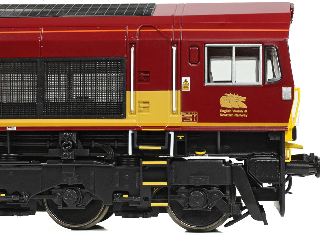 The new Class 66 combines a high-fidelity, injection-moulded bodyshell with a heavy, diecast chassis to which separate main frames are fitted. A multitude of individual parts are then added, manufactured in both metal and plastic, to capture every element of the prototype. The HTCR radial bogies are reproduced in miniature using multiple components, with many separately added details, resulting in these true to life replicas which interface neatly with the locomotive’s frames for an authentic appearance and accurate ride height. The separate axle heads that each rotate smoothly and reliably when the model is moving, mimicking this characteristic feature of the prototype, is the finishing touch.