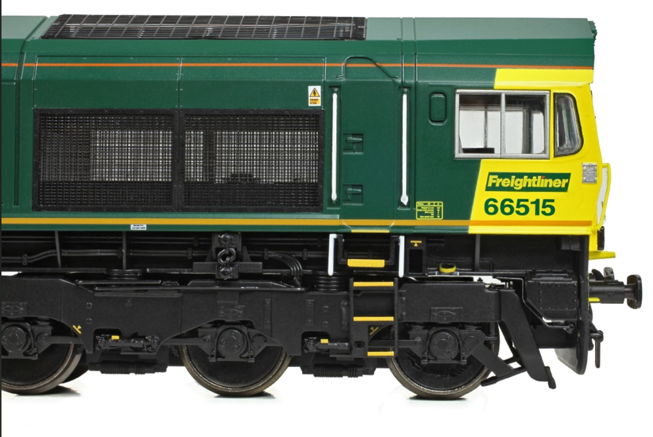 The new Class 66 combines a high-fidelity, injection-moulded bodyshell with a heavy, diecast chassis to which separate main frames are fitted. A multitude of individual parts are then added, manufactured in both metal and plastic, to capture every element of the prototype. The HTCR radial bogies are reproduced in miniature using multiple components, with many separately added details, resulting in these true to life replicas which interface neatly with the locomotive’s frames for an authentic appearance and accurate ride height. The separate axle heads that each rotate smoothly and reliably when the model is moving, mimicking this characteristic feature of the prototype, is the finishing touch.