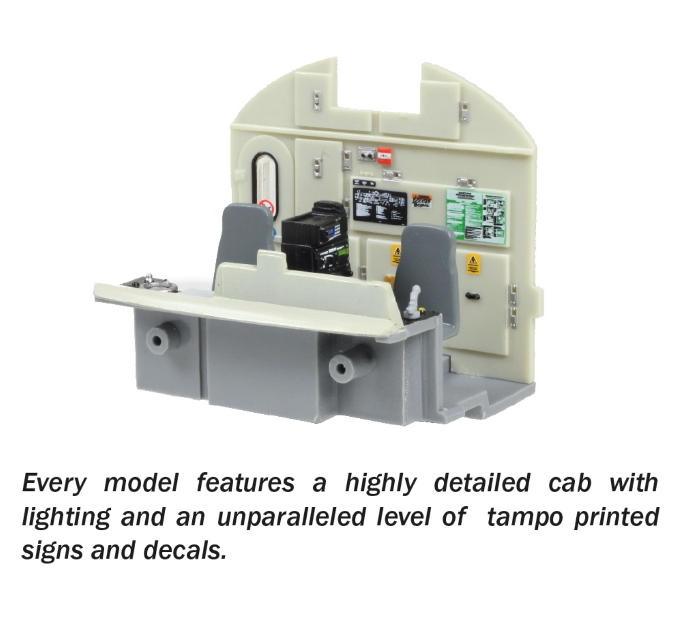 • Precision moulded bodyshell and locomotive main frames, with numerous separately fitted parts including horn boxes, fuel tanks, battery boxes and sand boxes