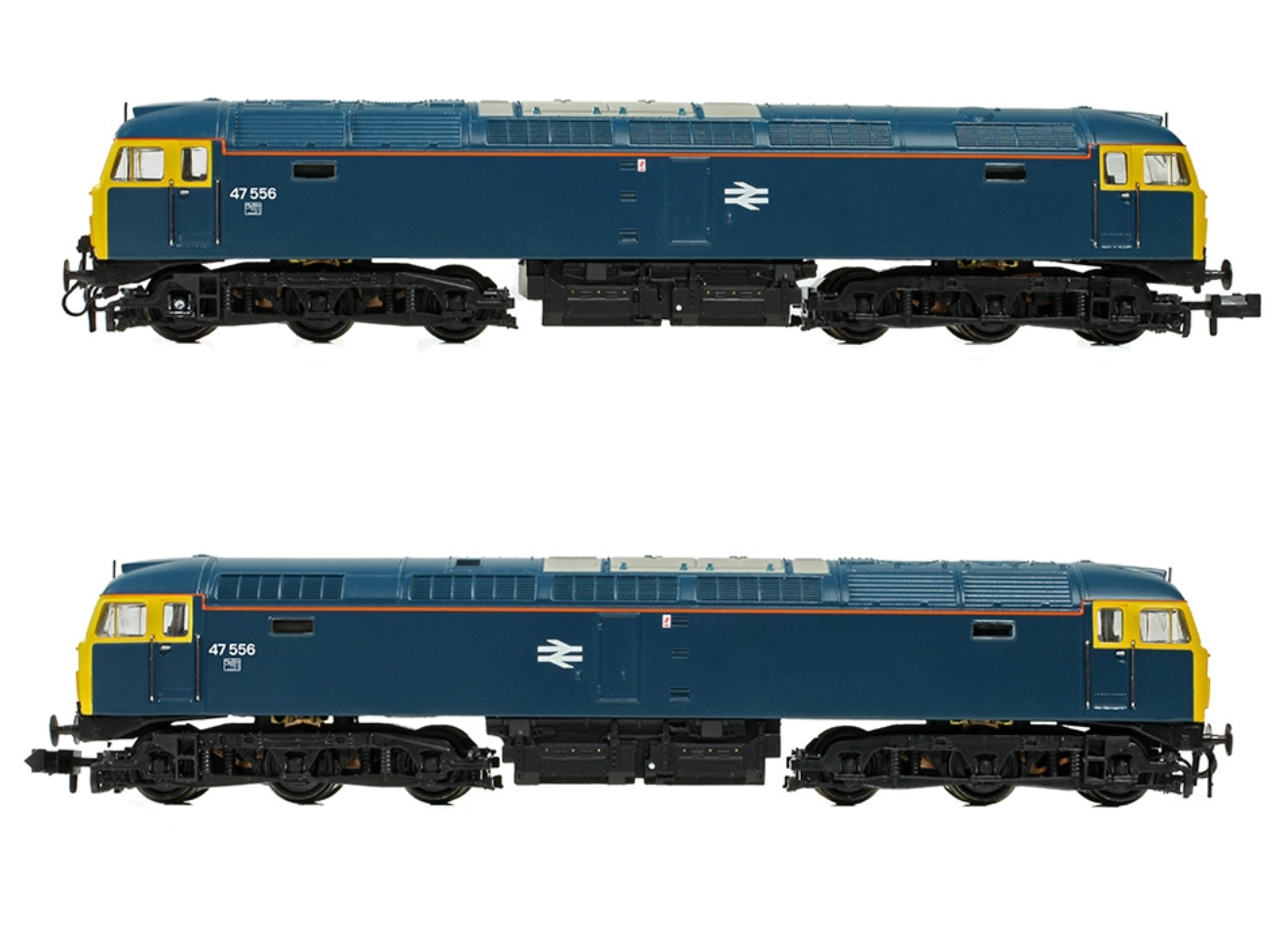 The Class 47 was British Railways’ most prolific class of main-line diesel locomotive and so it’s no surprise that high fidelity models of these ever-popular machines are available in N Scale as part of the flagship Graham Farish range. Such were the variations that appeared across the fleet, whether from new or following modifications or refurbishment, that various sub-classes were used to highlight particular features and the Class 47/4s were those locomotives fitted with Electric Train Heating such as No. 47556.