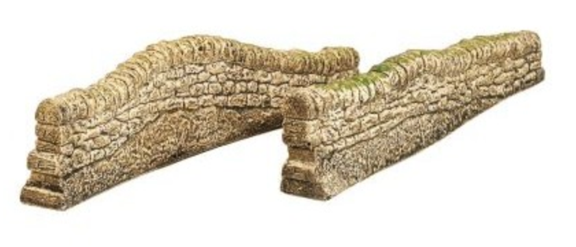Two lengths of specially contoured Dry Stone Wall, this gives added detail of uneven walls to create further interest. All drystone wall sections are made to be used together. Approx length 125mm
