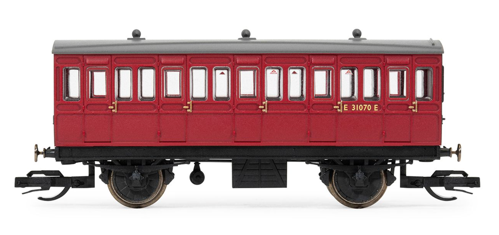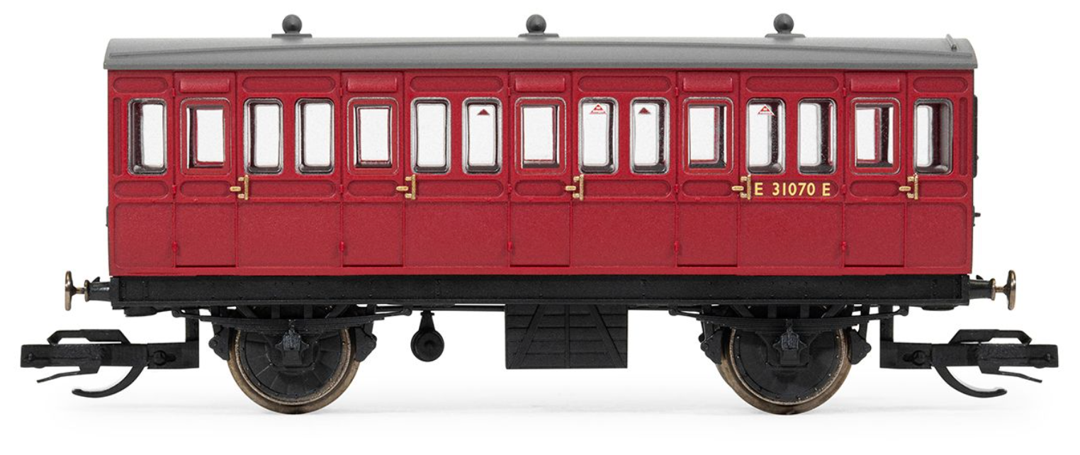 Hornby’s BR Third Class Four-Wheel Coach is finished in the classic BR crimson livery and offers a detailed representation of the four-wheel, four-compartment design that served as the backbone of many regional and suburban services.