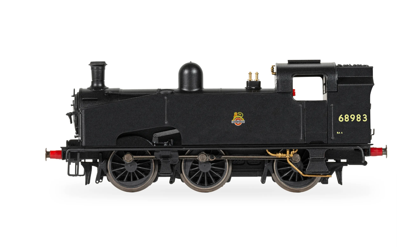 The Gresley-designed J50 Class was eventually made up of 102 locomotives, with design variations in the brakes, driving positions, boilers and bunker sizes resulting in four class parts. These locomotives served across the LNER from Eastfield in Scotland to Cambridge. If there was hard work to be done, a J50 was invariably on hand to do it. Built new in 1922 and 1924, 20 locomotives of the LNER J50 Class used a stock of second-hand standard 4’ 5” boilers, becoming J50/2. By 1926, they were the company’s group standard type. Fifty-two more locomotives were built; 38 at Doncaster Works as J50/3 and 14 at Gorton, as J50/4, between 1926 and 1939. The 30 GNR J23 locomotives from 1914-1919 were eventually re-classified by the LNER as J50/1s. In 1946, the class received their LNER renumbering from 8890 to 8991, all surviving to nationalisation to receive their British Rail numbering in the 60000 range. Withdrawals started in September 1958 and were completed by 1963, with six transferred to departmental use afterwards. These locomotives survived until around May 1965, No. 68961 Departmental No. 14 being the last to go in September 1965. No. 68983 was built at Gorton Works and entered service in January 1939 under LNER as No. 608. This was the second batch of 14 J50 locomotives constructed at Gorton Works as all the previous members of the class were built at Doncaster Works. It was fitted with vacuum brakes. The locomotive's running number was amended under LNER to 8983 in April 1946. After nationalisation in 1948, the locomotive was under BR ownership and was allocated to Sheffield Darnall (SHF) shed in January 1948. It saw another renumbering change to 68983 in July 1950. There was a shed reallocation to Hornsey (34B) in November 1952 and then a final reallocation to Doncaster (36A) in July 1961. After 23 years, the engine was withdrawn from service on 24 April 1962. The Hornby J50 model sports an imposing BR Black livery with a BR early crest emblazoned on the bodysides. Featuring all wheel pickups and an ABS cab area, this model is also DCC-ready with a six-pin socket and includes a coreless motor. |
