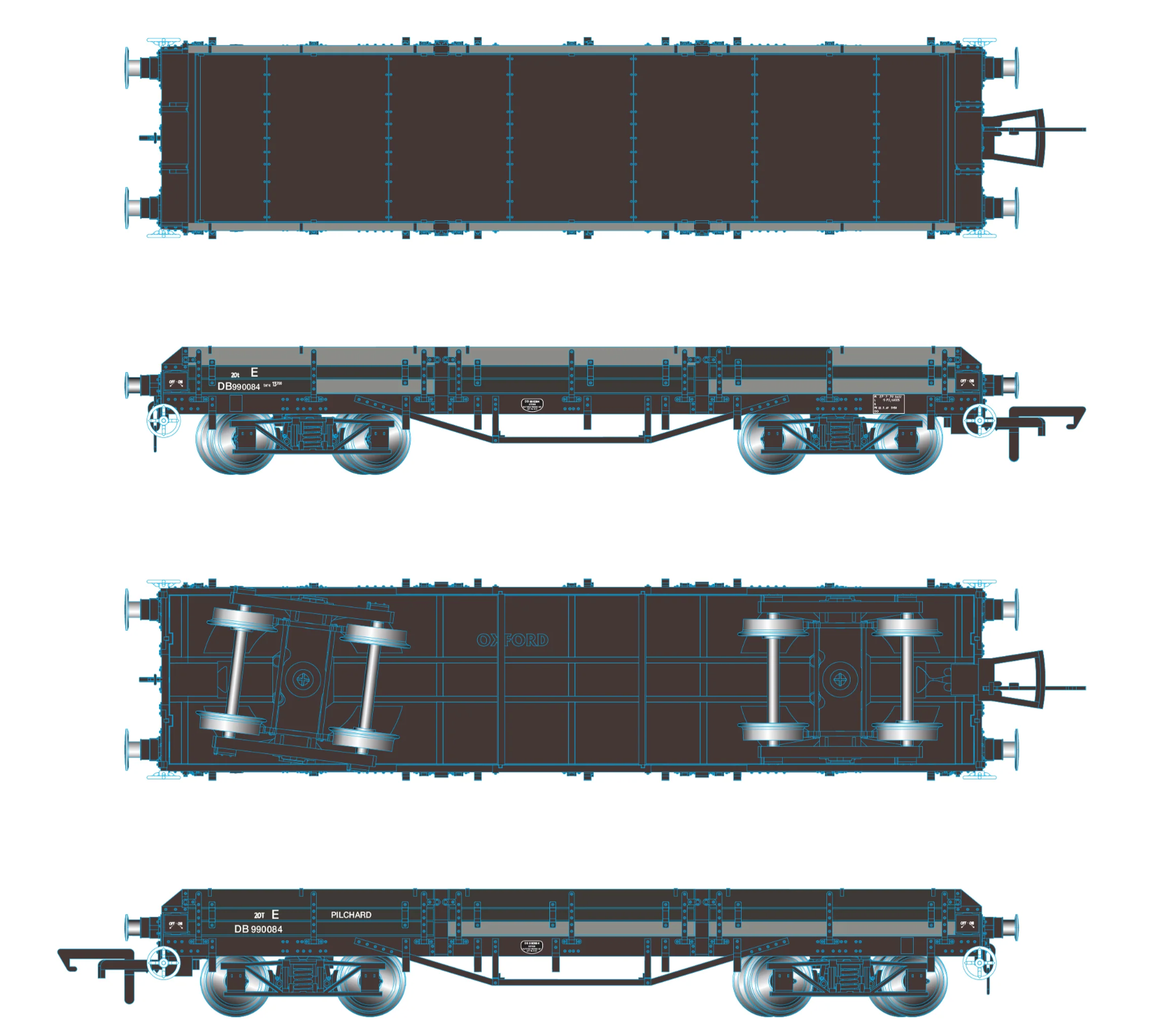 The smallest of the three LNER bogie drop-side ballast wagon designs but the only one not built before nationalisation. BR diagram 1/571 was built from May 1950 to May 1951 by Butterly Engineering under lot 2121. Only 50 were ever built with numbers ranging from DB990050 to DB990099.