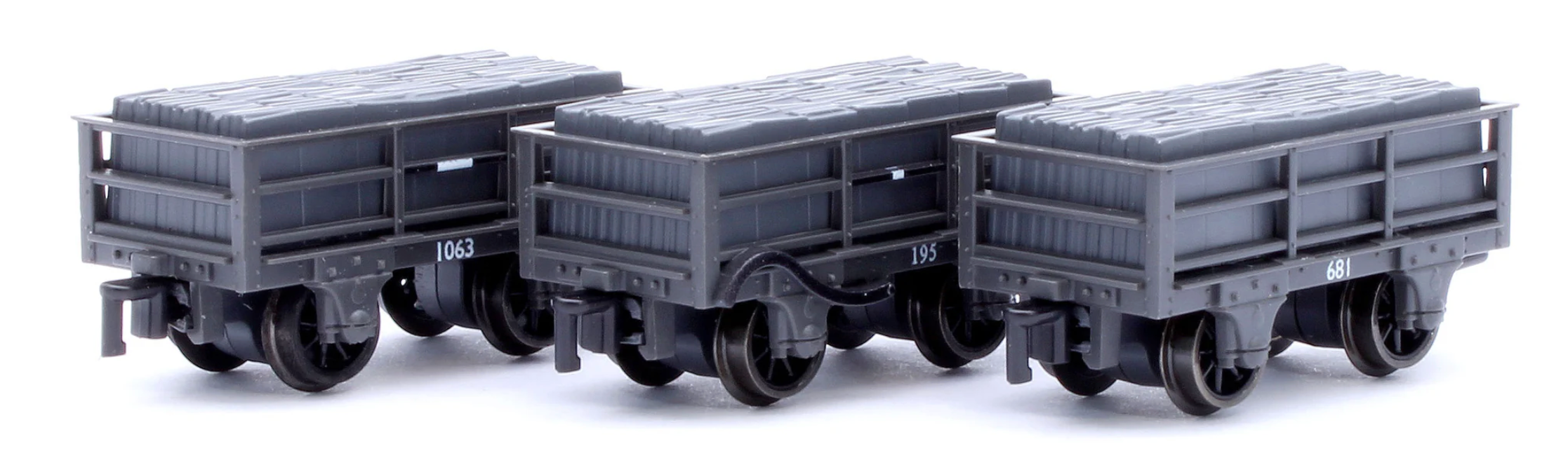 Peco 009 Rolling Stock - GR323 2T Ffestiniog Railway Welsh Slate Wagon Dark Grey Triple Pack (Copy)