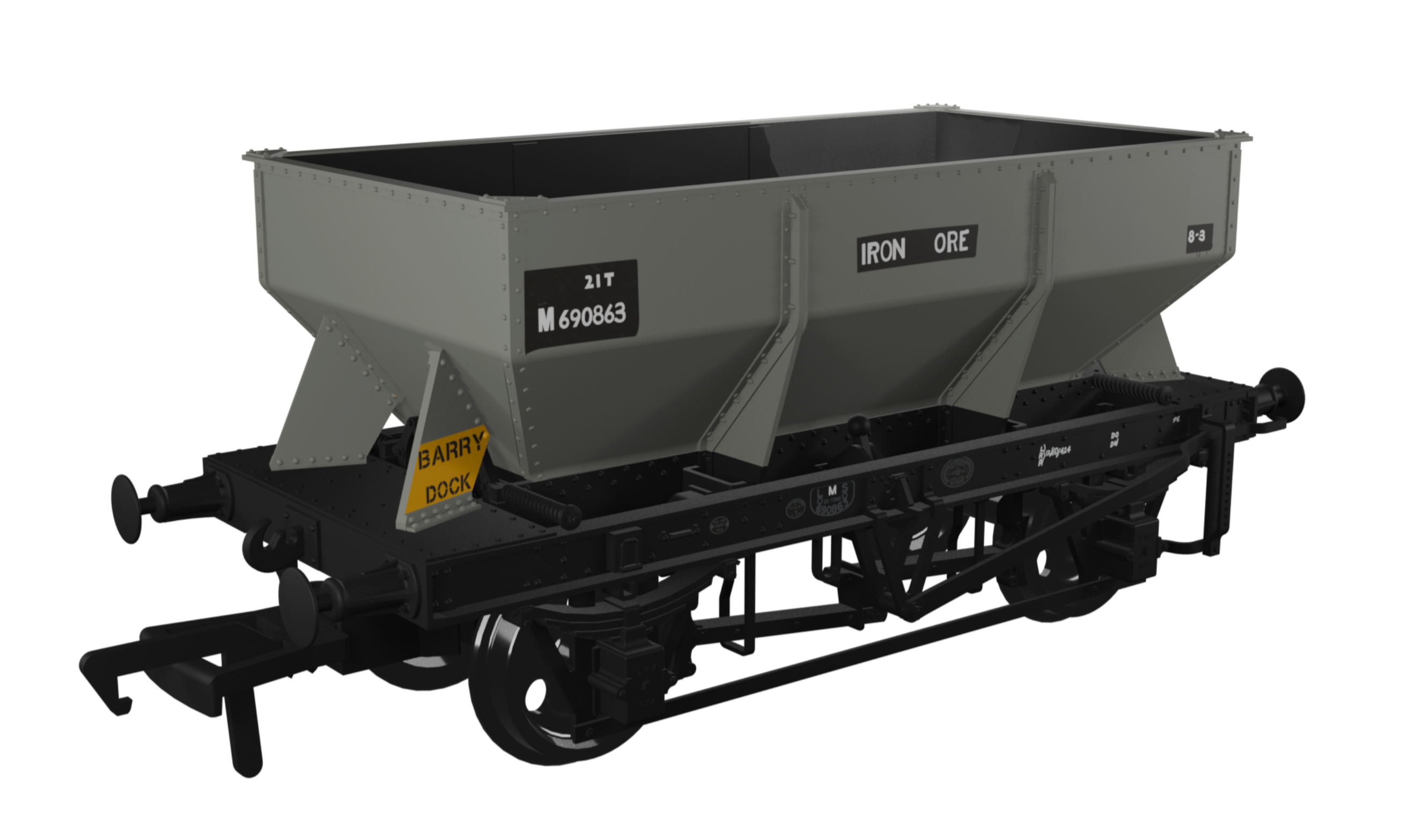 LMS Iron Ore Hopper BR (Iron Ore) LMS 20t HopperBR Grey (Iron Ore) No. M690863Ribbed buffer shanksDisc wheels running in metal bearingsHigh level of detail above and below the floor lineHigh...