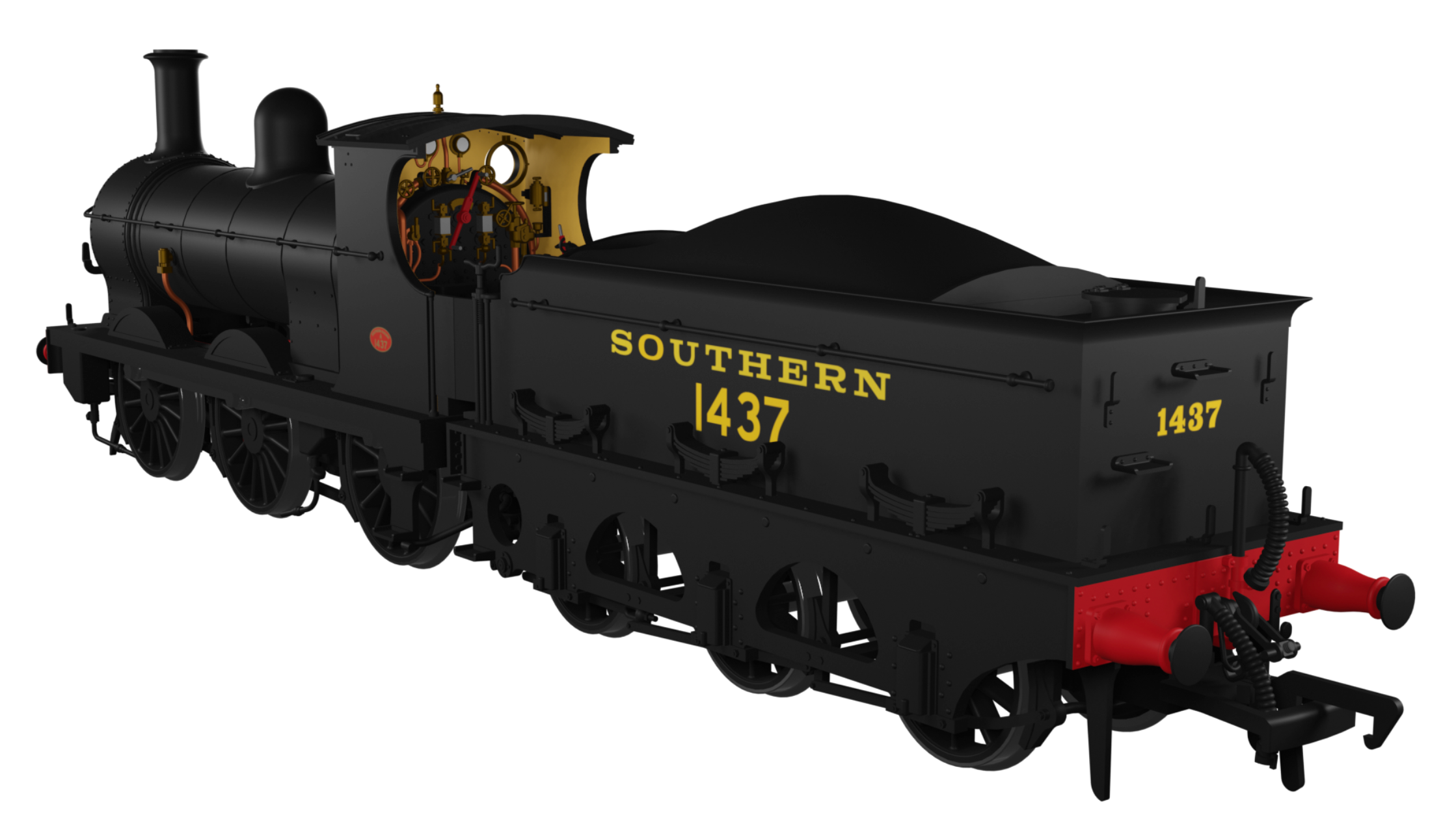 Presented in an original, SR Lined Black livery, this SECR 01 has a running number of 1437, with a detailed, fully riveted smokebox, tapered buffers on a standard bufferbeam, smokebox lubricators, and a firebox glow.