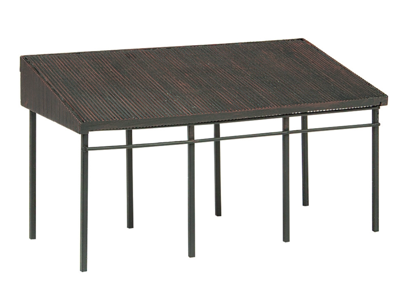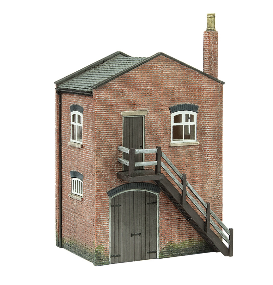 Industrial locations have always needed places to store their goods and protect them from the weather. Featuring a red brick storage building with brown wooden doors and staircase along with a separate corrugated metal canopy, the Lucston Shed and Stores is perfect for depicting such a facility on your OO or OO9 Scale model railway layout or road diorama.