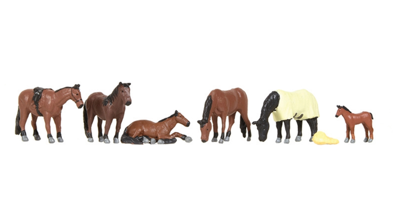 Add life to any layout with this fantastic range of hand painted Scenecraft Horses figures, each pack contains 7 delightful horse studies in different poses and of different animal ages.