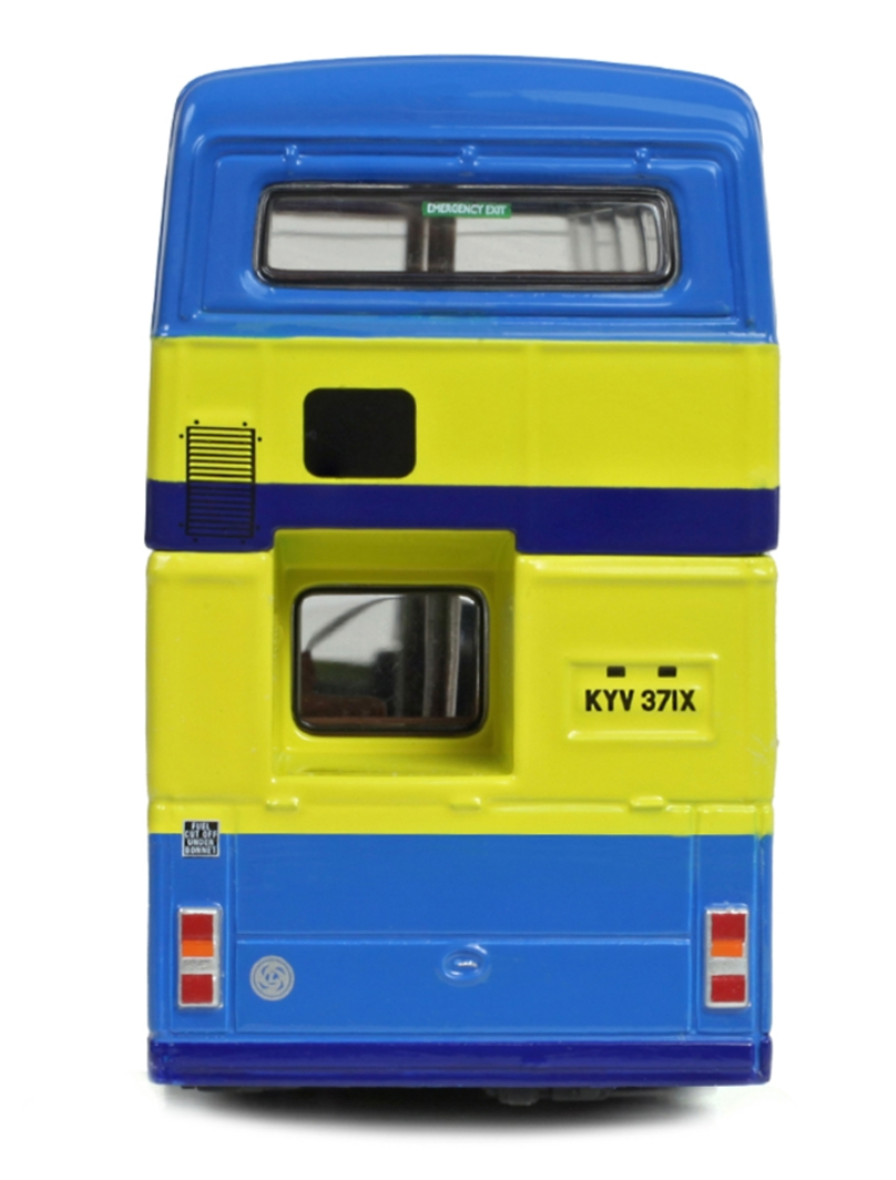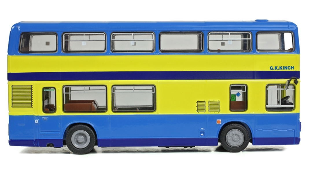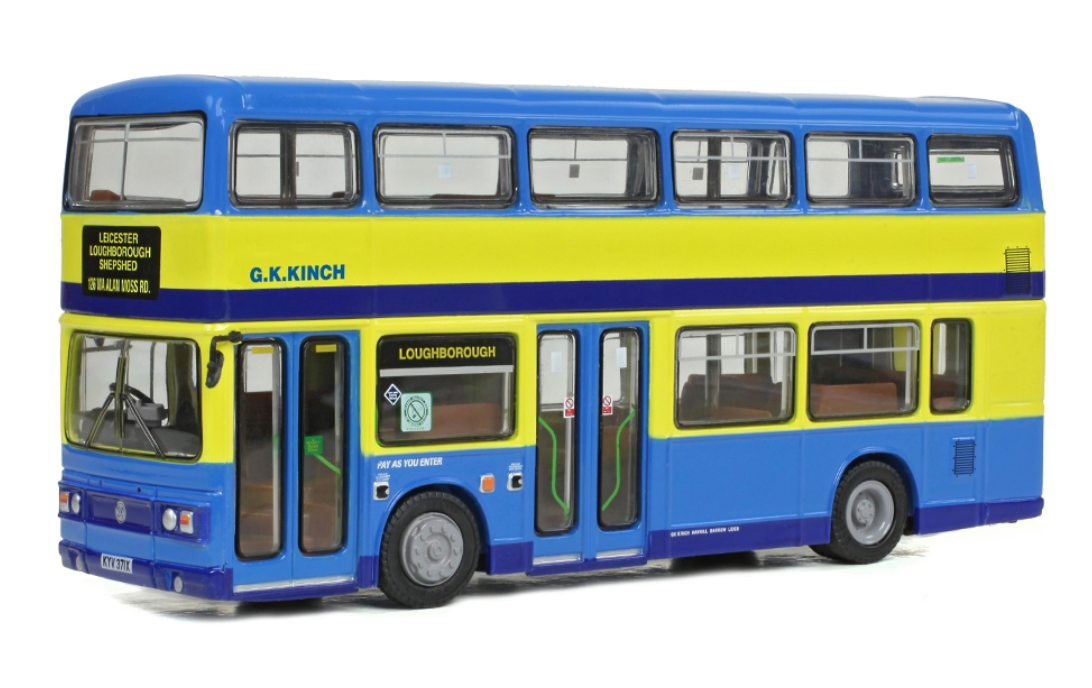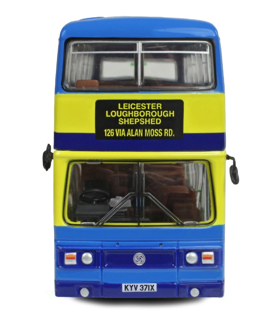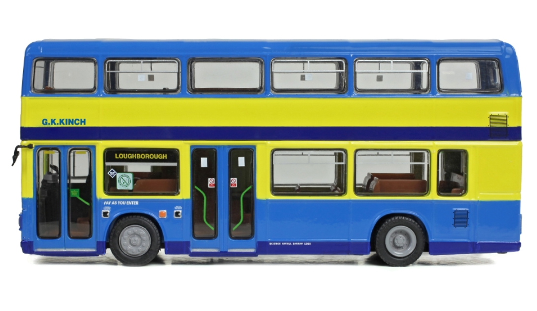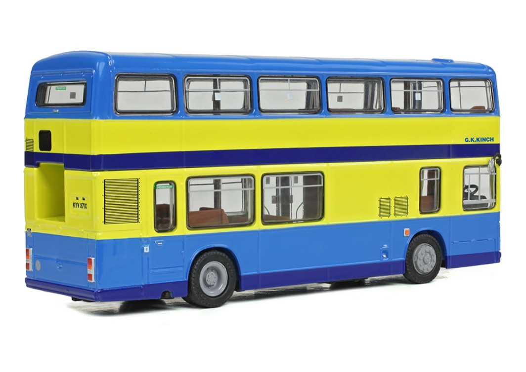 Our model depicts registration KYV 371X, formerly LT number T371, which was one of a number of Titans sold to G.K. Kinch of Barrow, near Loughborough, following withdrawal from the Capital. The model shows it in its circa 1994 guise, wearing full G.K. Kinch blue and yellow paintwork, as working service 126 to Leicester, Loughborough and Shepshed via Alan Moss Road. The model is based on the Exclusive First Editions Dual Door Titan tooling, with the highly detailed livery having never before been seen on an EFE Titan.