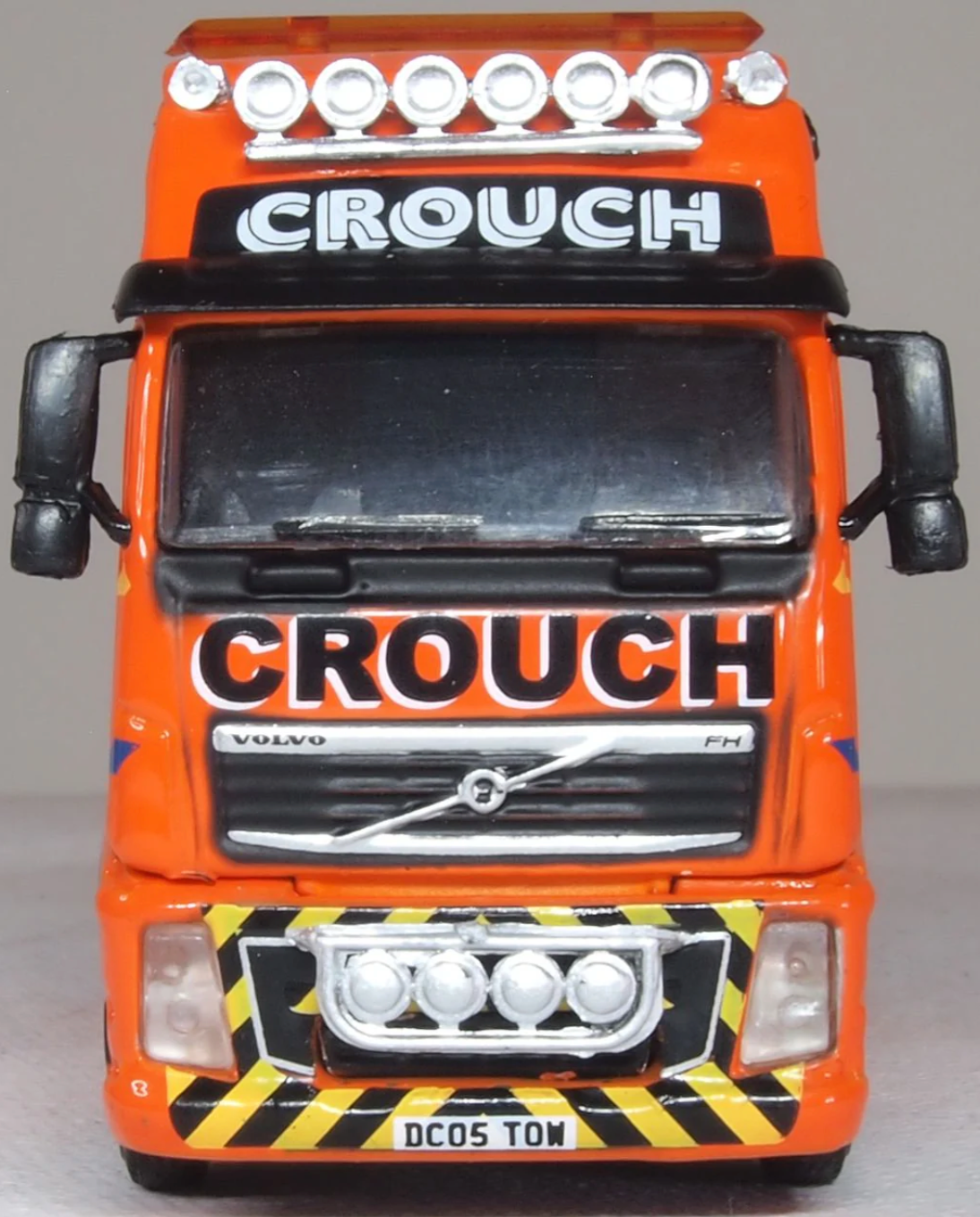 You’ve been treated to Crouch Recovery vehicles in the Oxford series before and on this latest release, registered DC05 TOW, their highly visible orange and yellow livery features on another favourite 1:76 scale Oxford truck - the Volvo Boniface. Decorated primarily in orange on a black chassis, the lifting gear is painted yellow and there is much black masking to the mudguards, sun visor, air intakes, cable reels and wing mirrors. Crouch Recovery graphics feature on the sides in black with white dropped shadow, repeated across the front as well as the name appearing vertically on the rear tailgate. Note the additional components on this release too – a lightbar on the winch moulded in tinted orange; four spotlights fitted to the lower front grille; six spotlights fitted above the front windscreen; and two air horns fitted to the roof.
