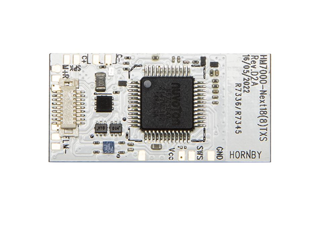 Part of the innovative HM7000 range, the Next18-pin Bluetooth® and DCC sound decoder is ready to plug into locomotives featuring a Next18 (NEM662*) socket. The Next18 socket is found in modern Hornby locos, many other locomotives in 00, H0 and some smaller scale locomotives.