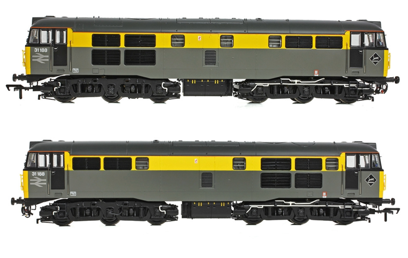Depicting a Refurbished Class 31/1, this locomotive has had its Mirrlees engine replaced with an English Electric 12SVT and the Branchline model faithfully recreates this, with the correct roof exhaust ports and 12SVT engine block detail visible through the bodyside windows.