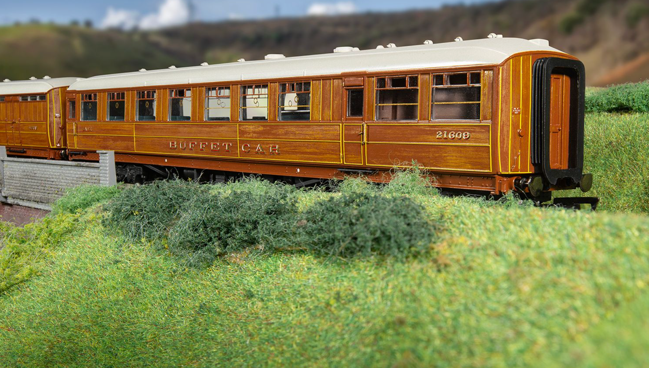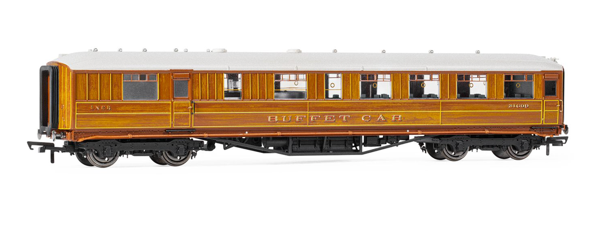 This highly detailed Gresley Corridor Buffet Car is presented in a varnished teak finish with printed decoration including the LNER branding, the words ‘Buffet Car’ and its unique number 21609. The model has detail underneath and metal wheels for finer running.