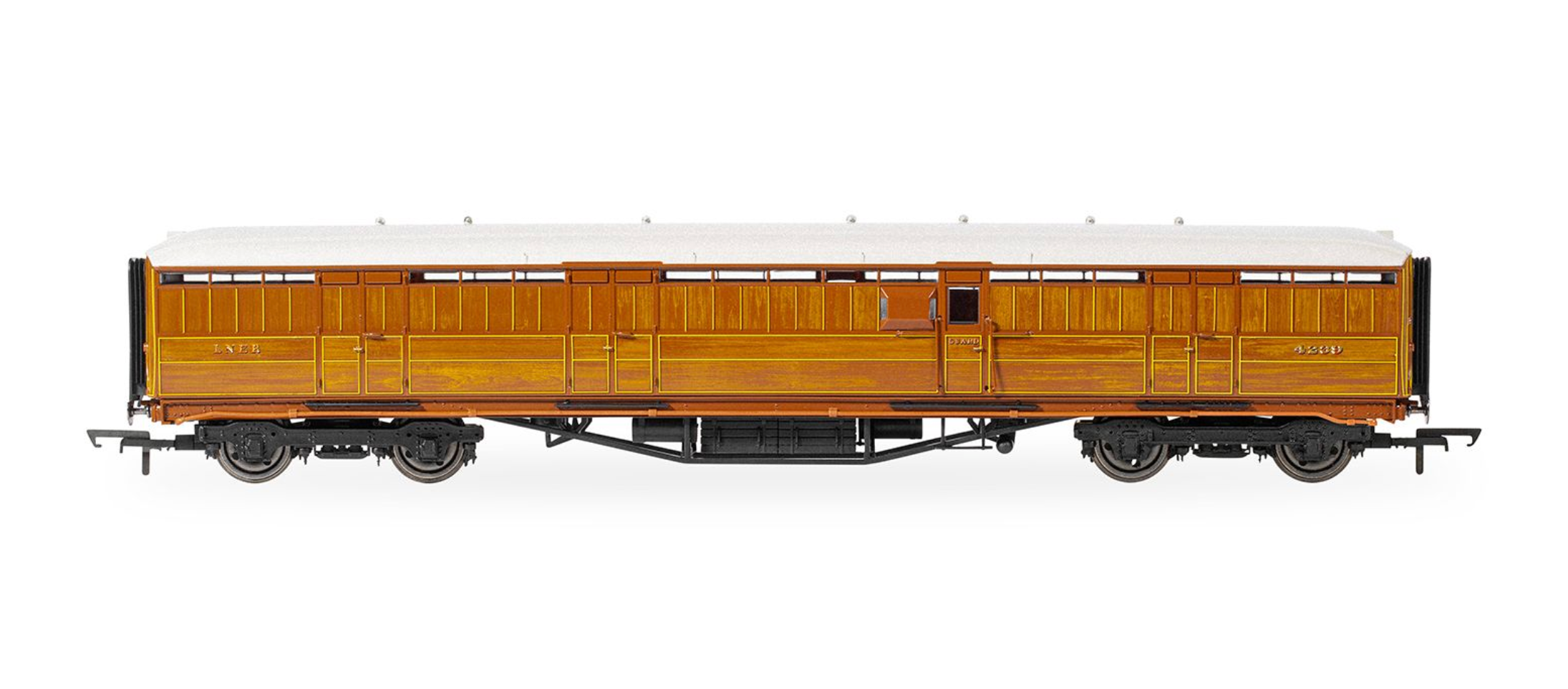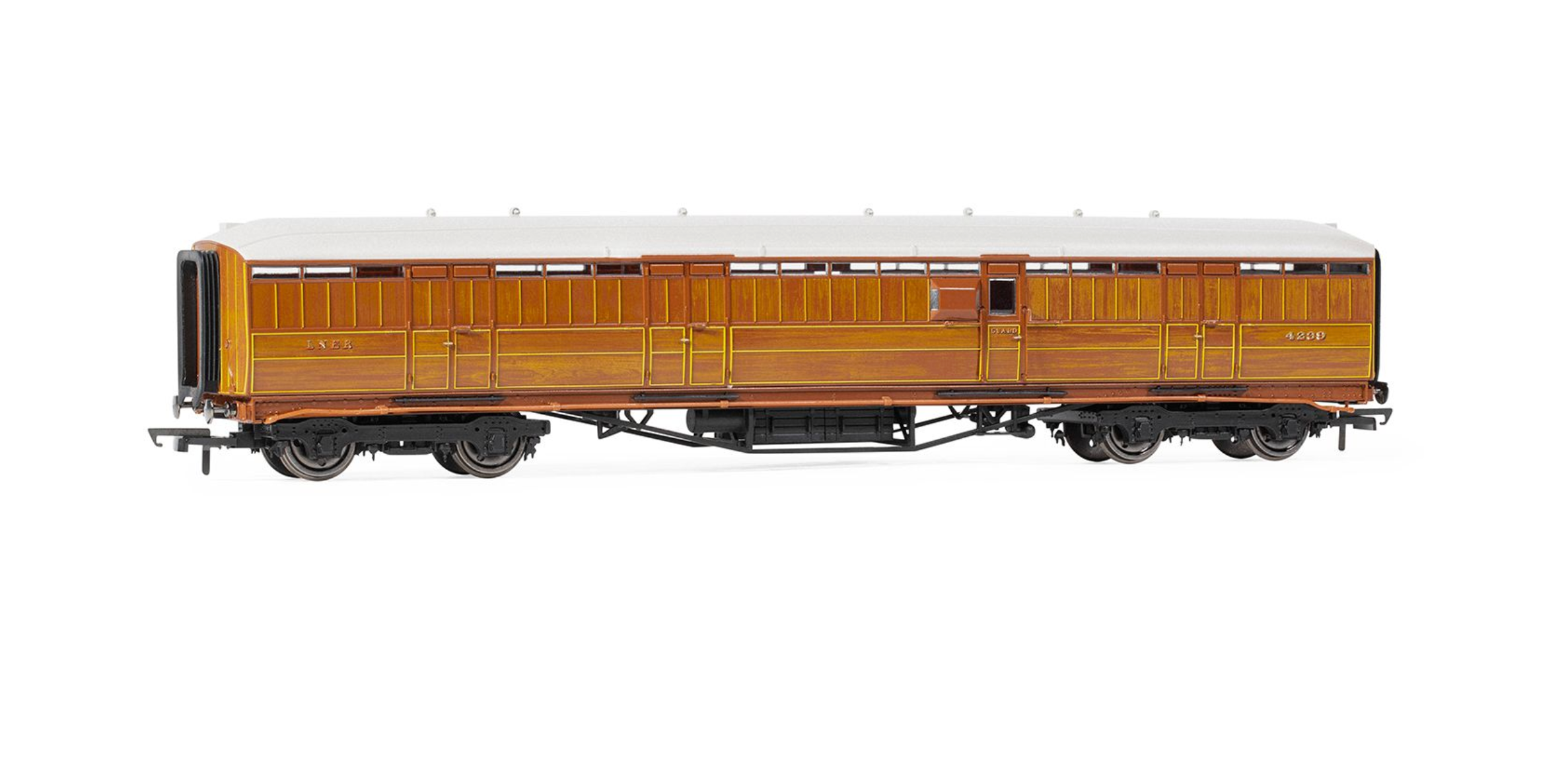 This highly detailed Gresley Corridor Full Brake Coach is presented in a varnished teak finish with printed decoration including the LNER branding and its unique number 4239. This coach does not have windows as it wasn’t meant for carrying passengers, it contained the guard’s van. The model has detail underneath and metal wheels for finer running.