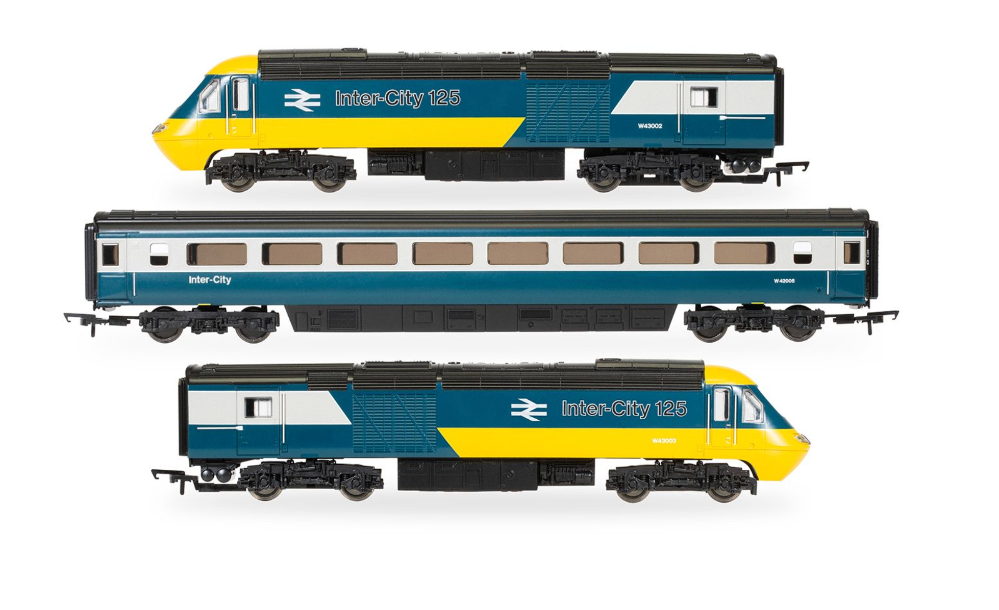 This train set comes complete with a pair of Class 43 diesel driving cars; one powered and the other a non-powered driving car. The power car has head lights that illuminate.