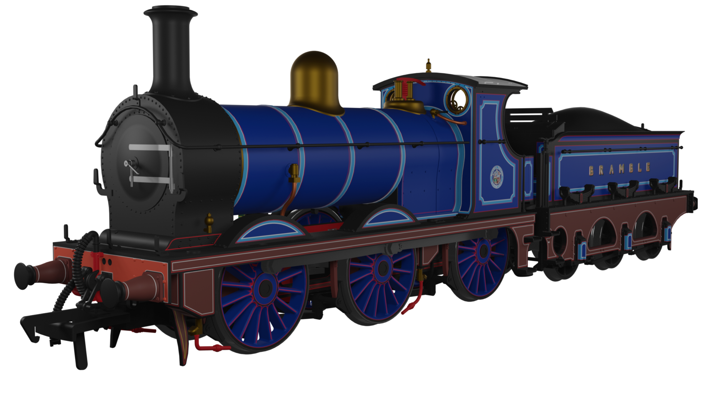 Presented in the "What If" livery of the Bramble Bluebell Railway, this SECR 01 has a running number of 65, with a detailed, fully riveted smokebox, tapered buffers on a standard bufferbeam, smokebox lubricators, and a firebox glow.