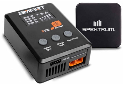 The Spektrum™ S100 Smart USB-C Charger makes battery charging the easiest it has ever been. Its Auto Charge feature recognizes your Smart battery's parameters, such as chemistry type and charge rate, and begins safe, correct charging automatically when the battery is connected. With its up to 100W power, new user interface, and ability to fast charge Smart batteries on either the IC3® or IC5® integrated output port, the S100 charger offers a versatile and truly hassle-free charging experience. You can charge virtually any RC battery* with the S100 charger. The S100 is a convenient charging solution for those new to RC.