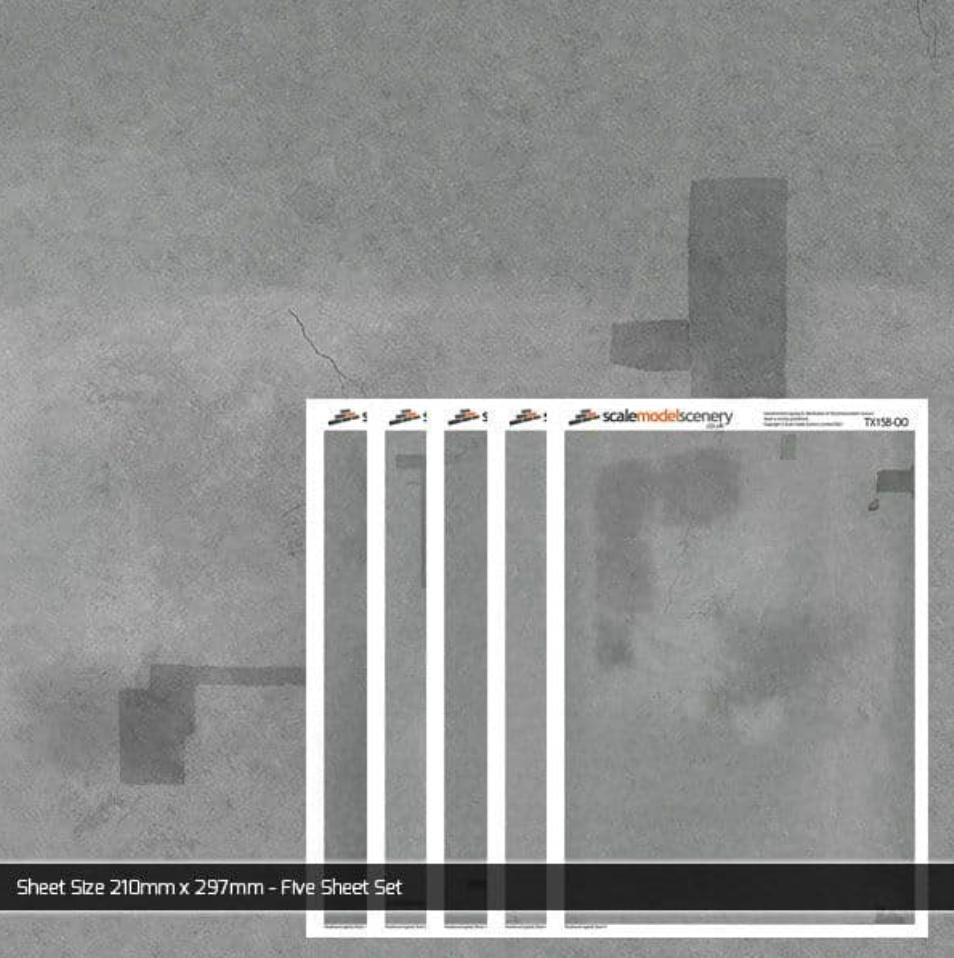 A pack of 5 unique A4 sheets (210mm x 297mm) of photo-realistic, weathered asphalt paper sheets. Ideal for use when scratch-building yards, car parks, forecourts and more on your OO gauge...