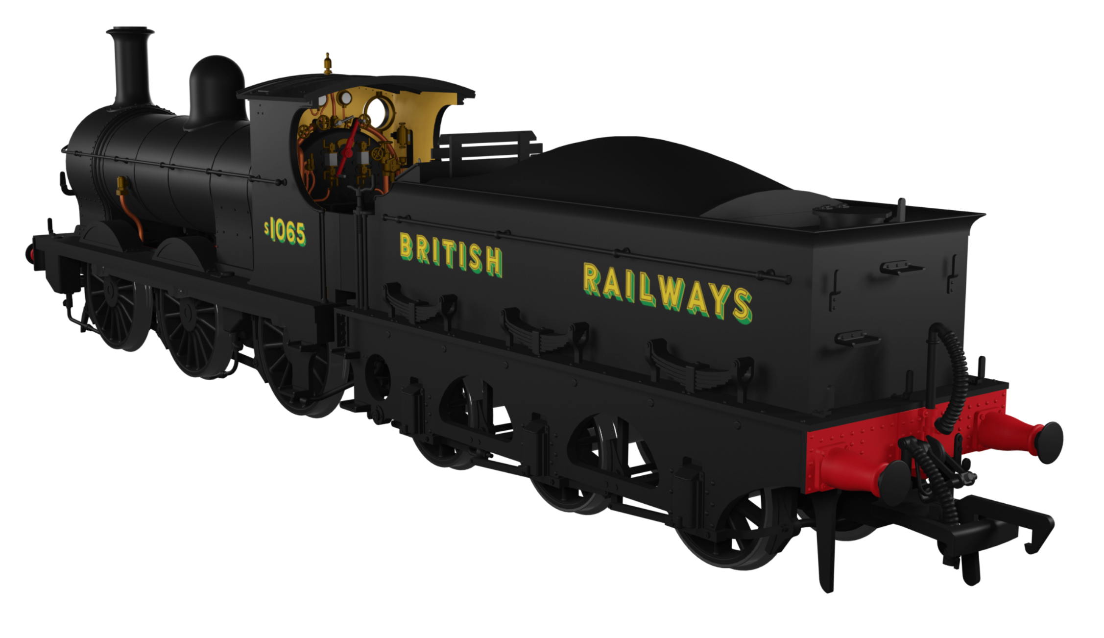 Presented in the British Railways Black Sunshine Lettering livery, this SECR 01 has a running number of s1065, with a detailed, fully riveted smokebox, tapered buffers on a standard bufferbeam, smokebox lubricators, and a firebox glow.